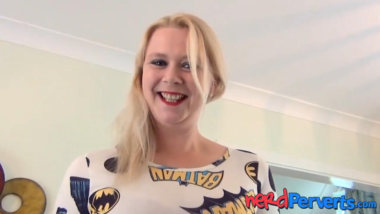 English blonde MILF Jodie Cummings blows a huge cock in a steamy POV. She deepthroats it and plays with her natural tits while the nerd pervert watches. He then gives her a handjob and cums all over her face.