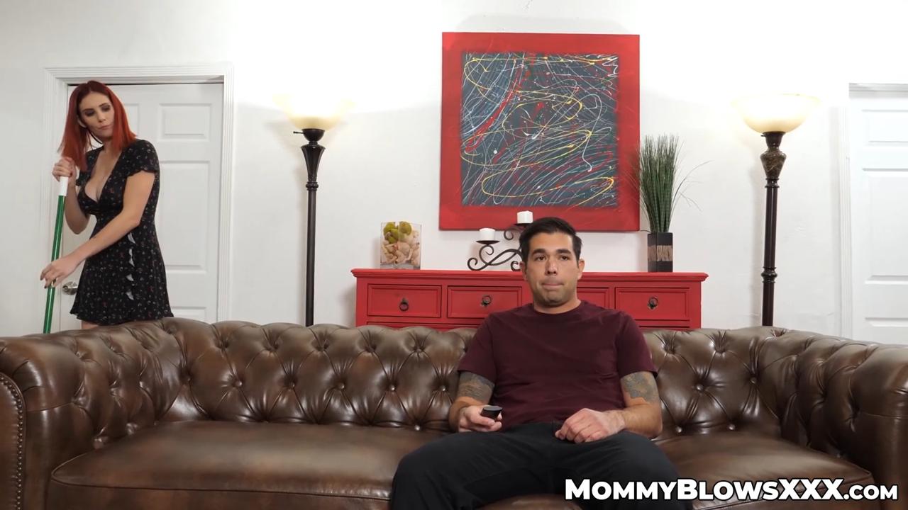Horny redhead MILF Lilian Stone cleans up her stepson with deepthroat