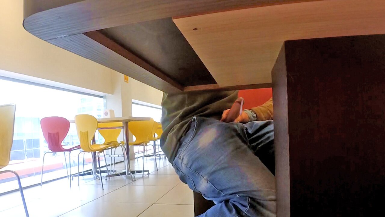 Hot new MILF sucks and jacks off a big cock in a public cafe. She takes a facial from the amateur man, and he blows his load all over her pretty face.