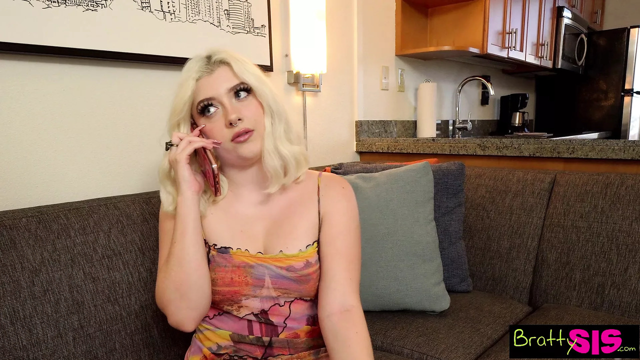 A hot blonde stepsis with medium boobs and fair skin teases with a sultry voice, "Maybe you could fuck me good?" She leans in, ready to swallow his massive dick whole. He eats her trimmed pussy before giving her the best blowjob of her life.