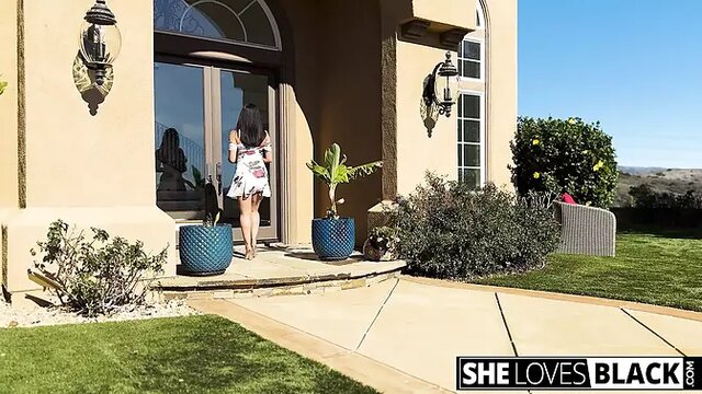 A friendly visit turns into a white girl's steamy encounter with a huge black cock. She explores his massive tool with curiosity and delight. They end up fucking hard and he cums all over her beautiful bubble butt.